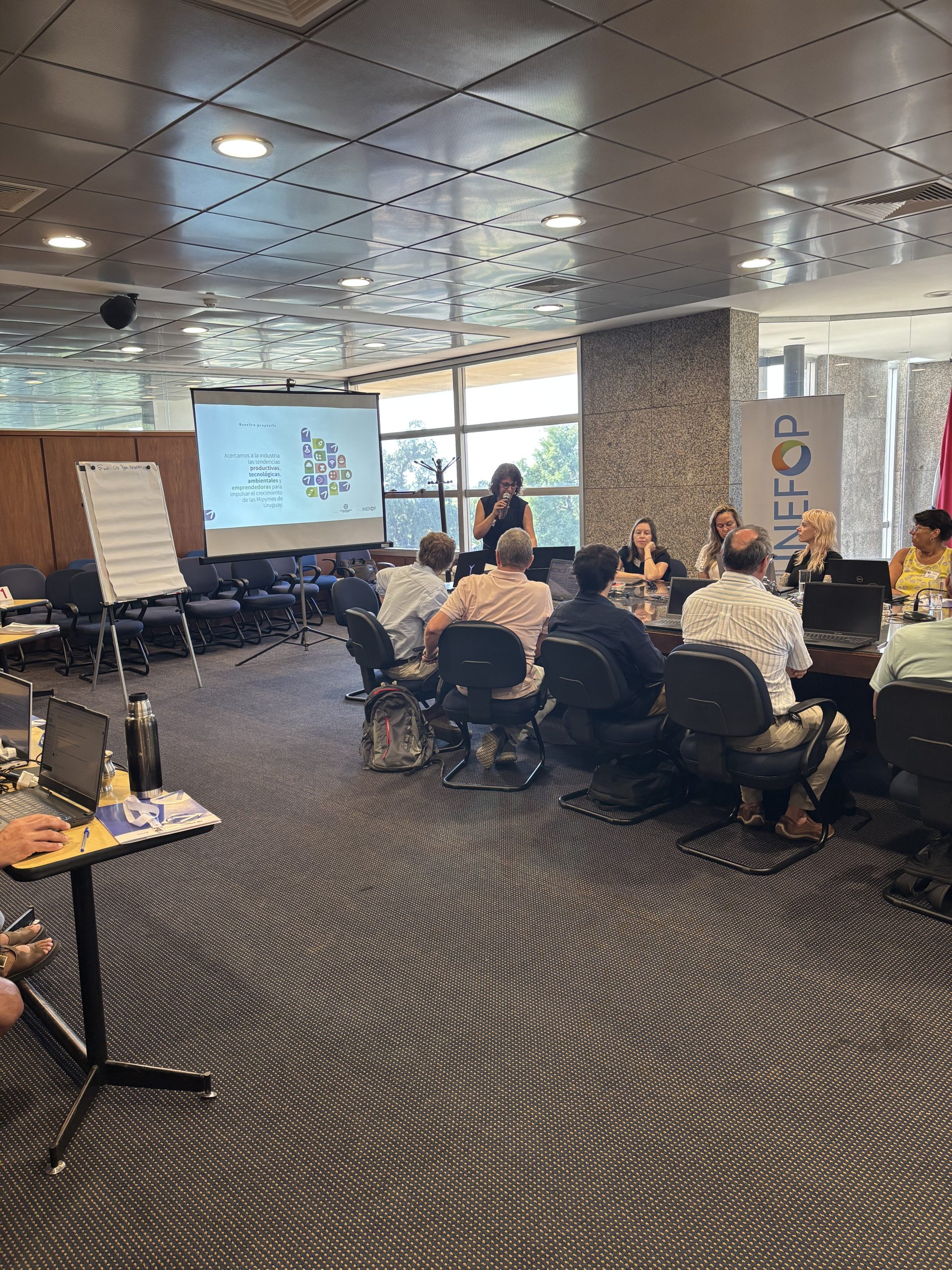La apertura del encuentro estuvo a cargo de Yanina Rodriguez, gestora de innovación de Impulsa Industria, quien presentó el proyecto que ejecutamos desde la Cámara de Industrias del Uruguay con financiamiento de INEFOP. Durante su intervención explicó cómo, a través del programa, acercamos a las Mipymes industriales servicios y herramientas vinculadas a tendencias productivas, tecnológicas, ambientales y emprendedoras para impulsar su crecimiento y competitividad.