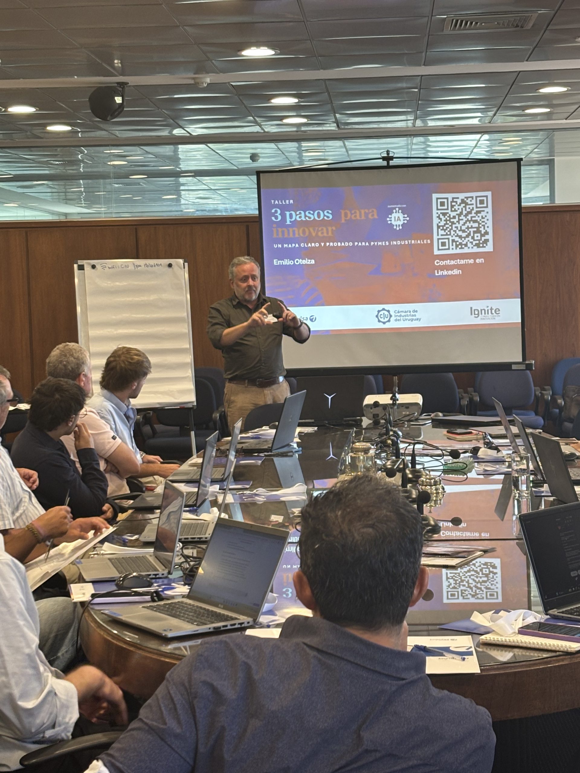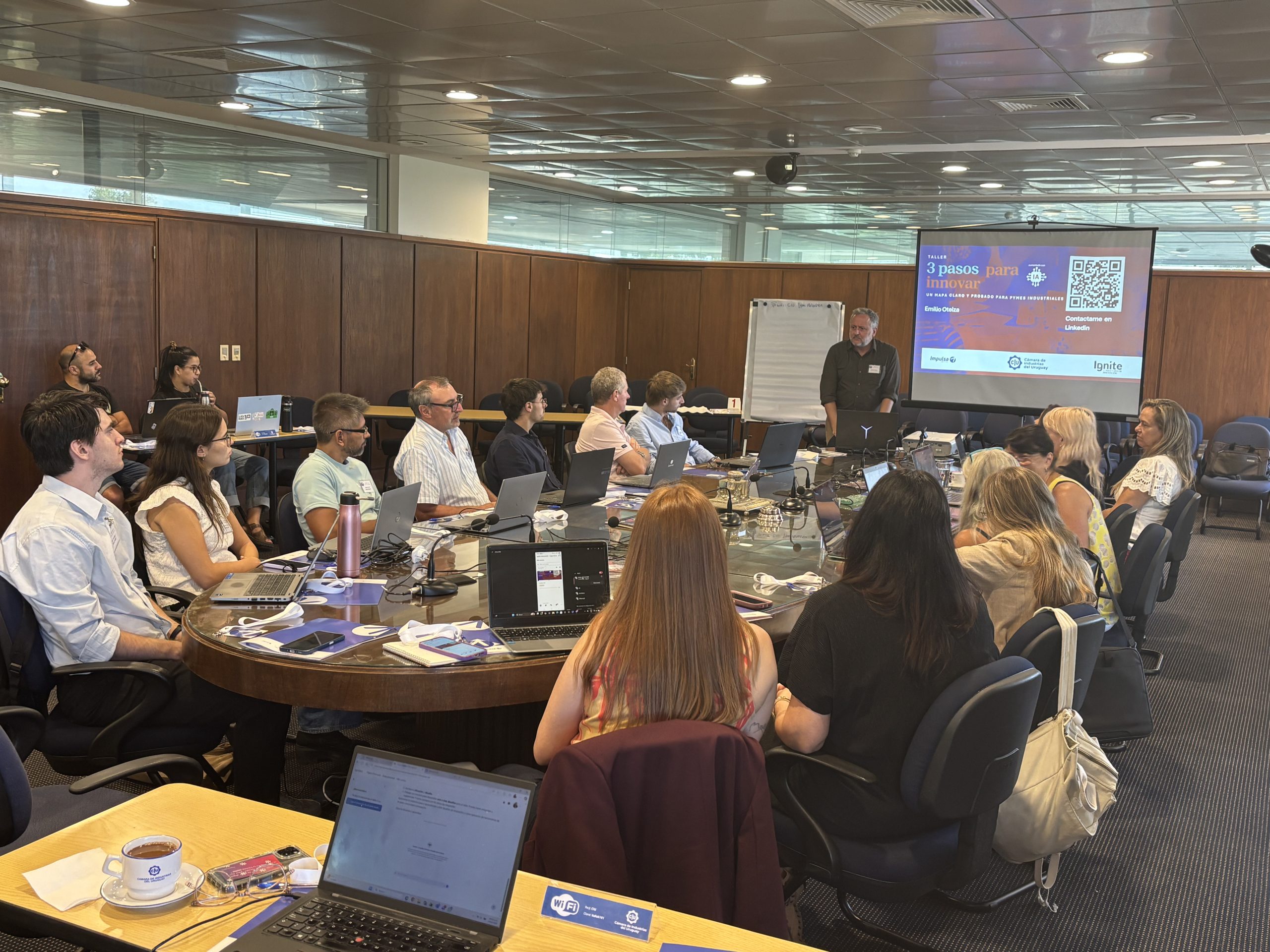Los días martes 10 y jueves 12 de febrero realizamos en la Cámara de Industrias del Uruguay el taller “3 pasos para innovar: un mapa claro y probado para pymes industriales sin tiempo”, una instancia de formación orientada a acompañar a empresas industriales en la incorporación de herramientas prácticas para innovar en sus procesos, productos y modelos de negocio.