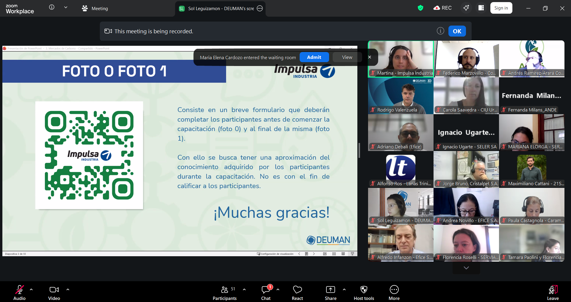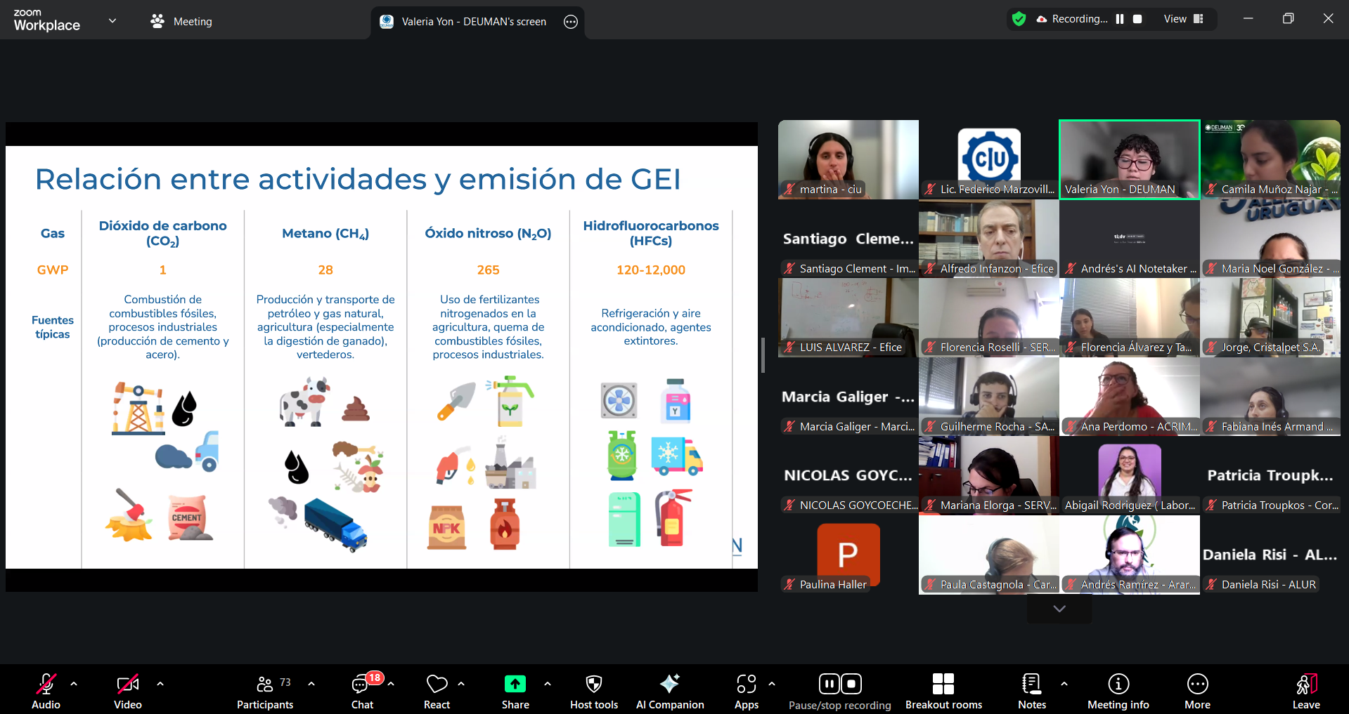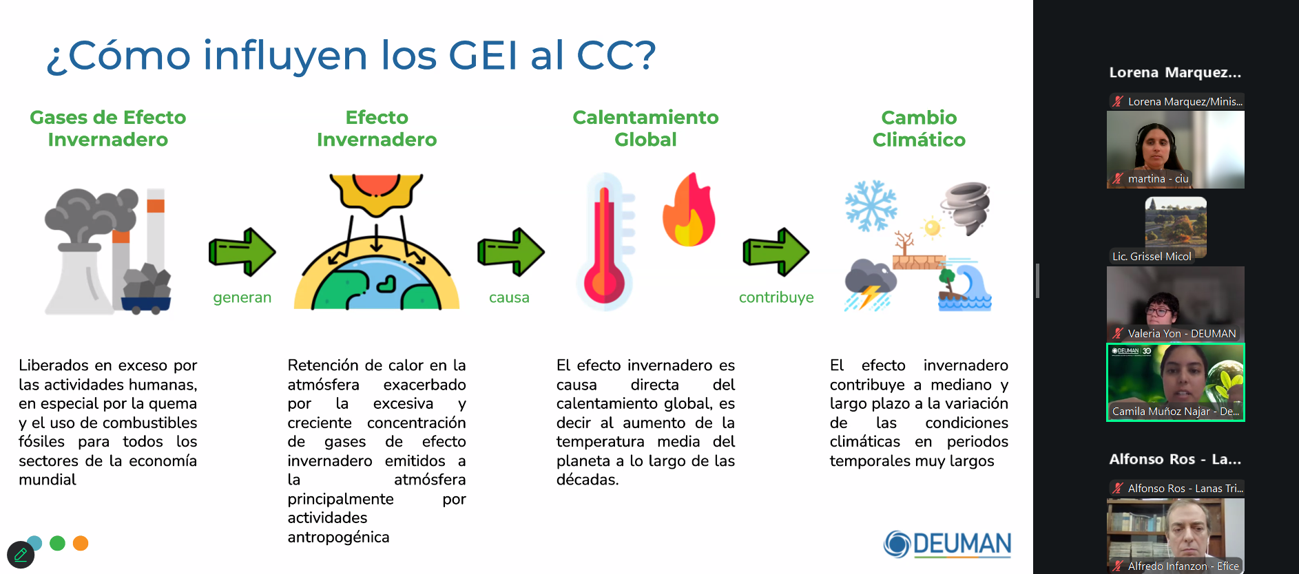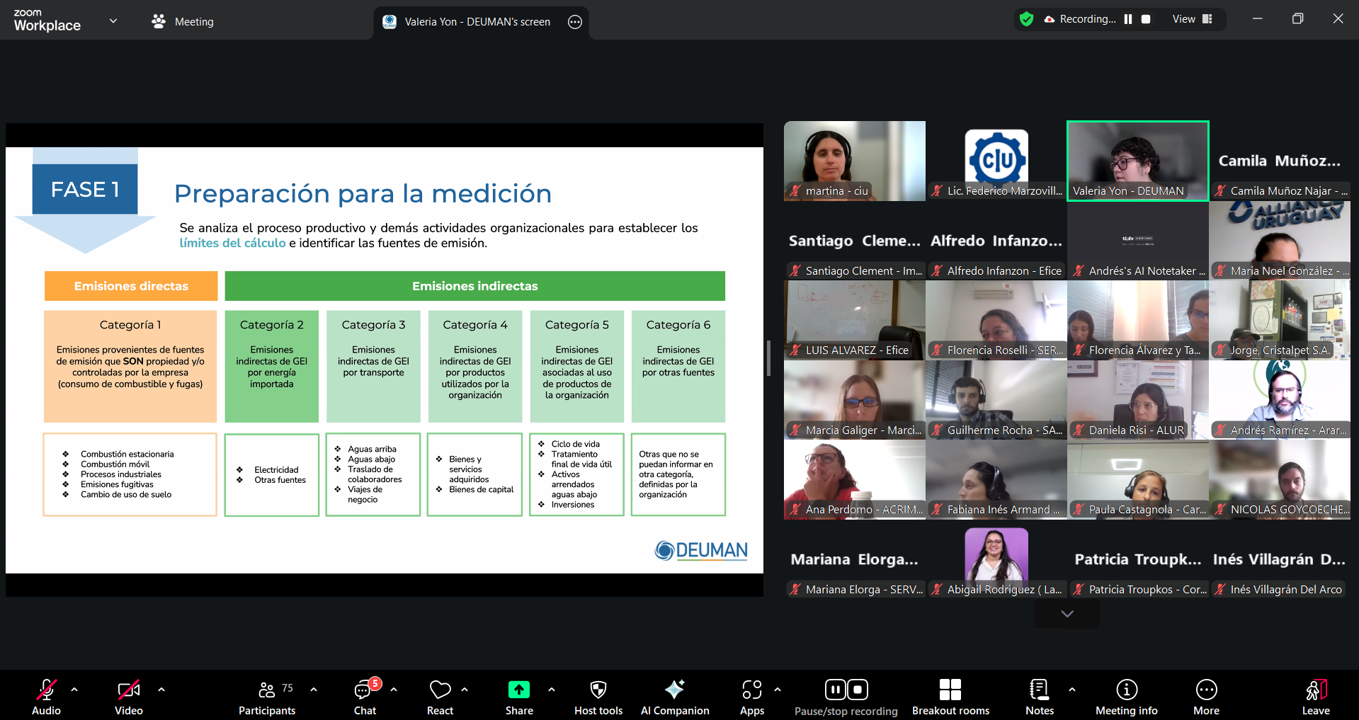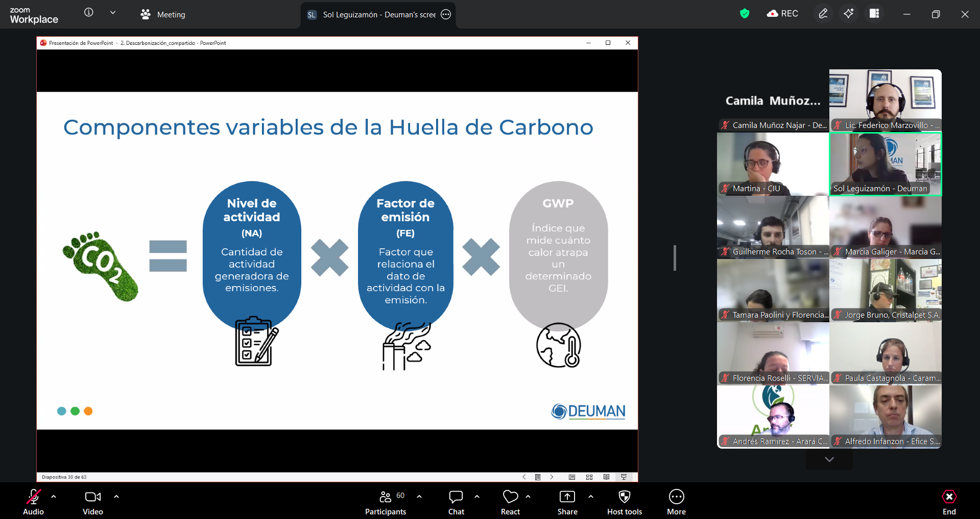 Las capacitaciones estuvieron a cargo de DEUMAN, consultora internacional con más de 30 años de experiencia en sostenibilidad y acción climática. El equipo estuvo integrado por Rodrigo Valenzuela, Camila Muñoz Najar, Sol Leguizamón y Valeria Yon, quienes aportaron una mirada técnica aplicada a la realidad industrial, fortaleciendo el enfoque práctico de los talleres.