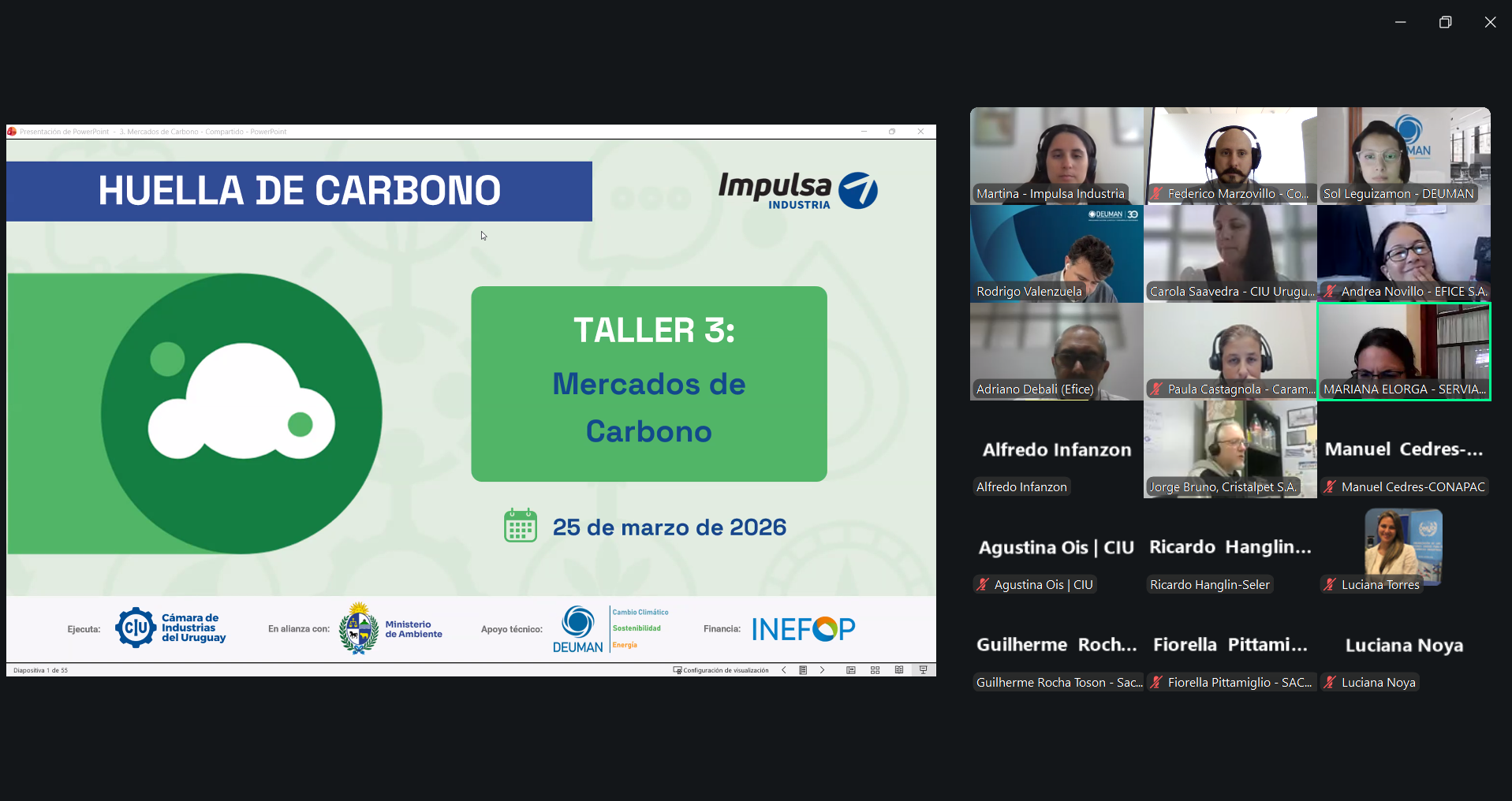 En este marco, desde la Cámara de Industrias del Uruguay, a través de nuestro proyecto Impulsa Industria, llevamos adelante un ciclo de capacitaciones en Huella de Carbono, orientado a acompañar a empresas industriales en la comprensión, medición y gestión de sus emisiones de gases de efecto invernadero.