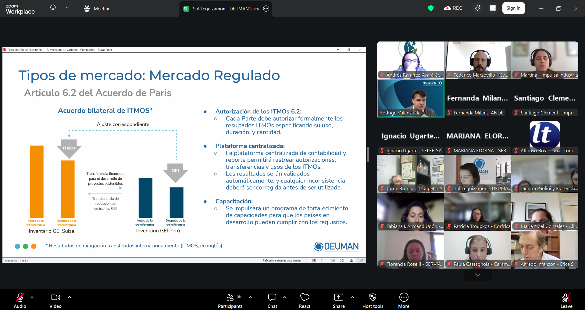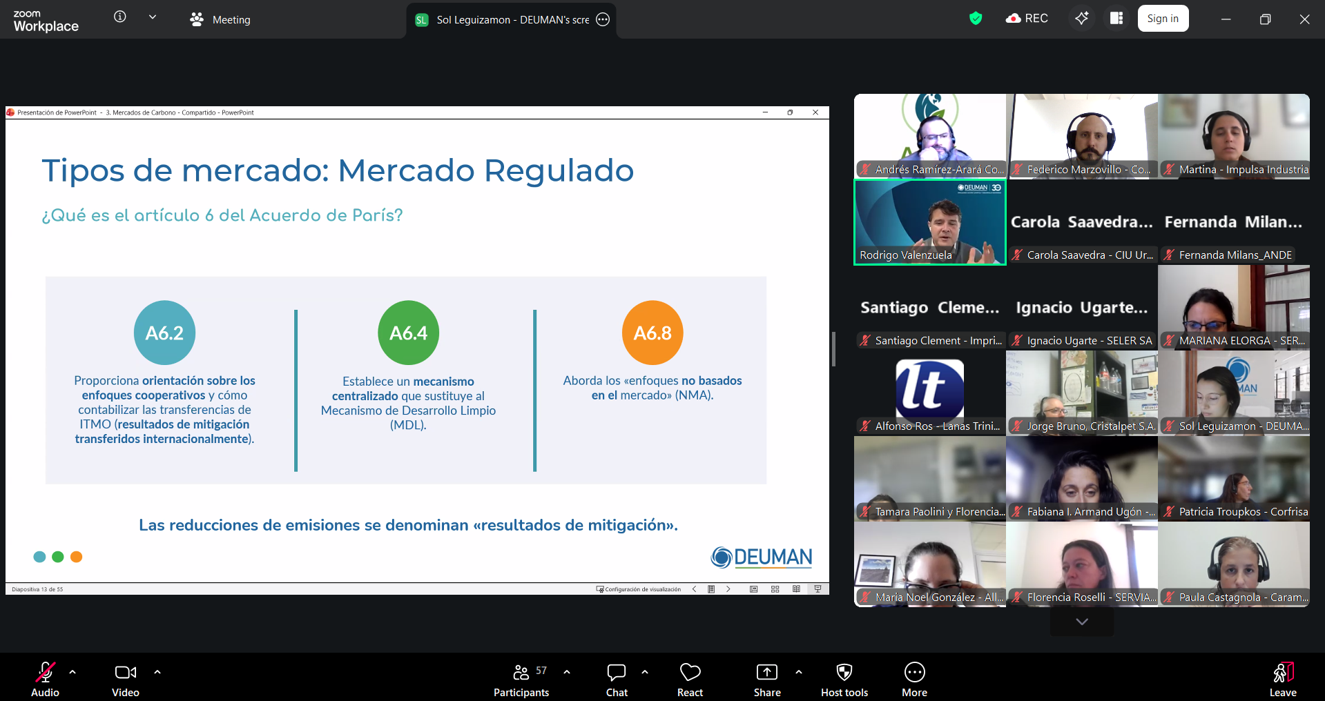 La última instancia, “Compensación y mercados de carbono”, contó con la participación de 55 personas, profundizando en los conceptos vinculados a la compensación de emisiones, el funcionamiento de los mercados de carbono, sus riesgos y buenas prácticas.